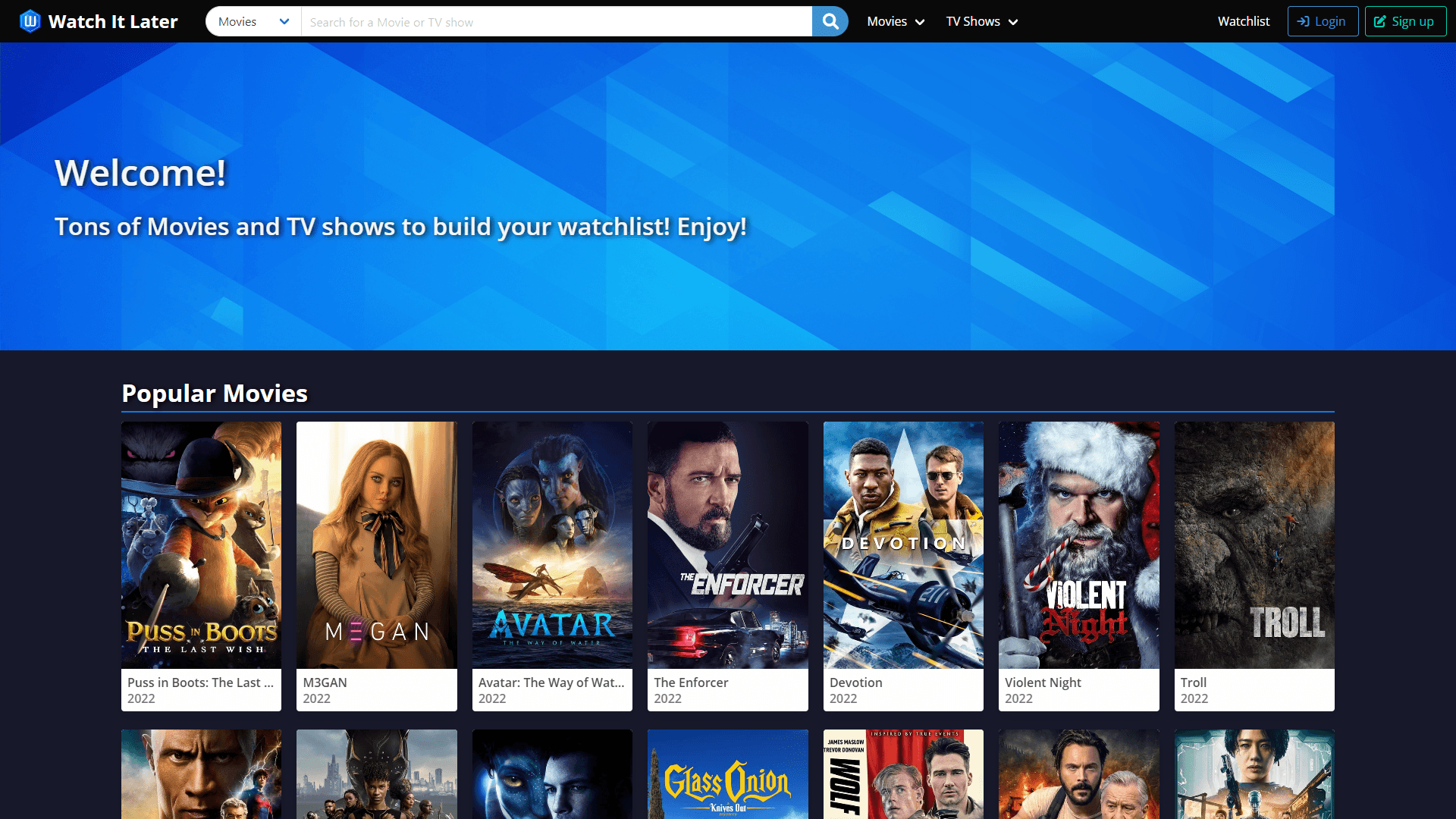 Watch It Later is a full-stack application that enables users to search for movies and TV shows, create accounts, and add their selected content to a personal watchlist, all of which is stored in a SQL database. Additionally, users can leave comments and rate the movies to share their feedback with others.